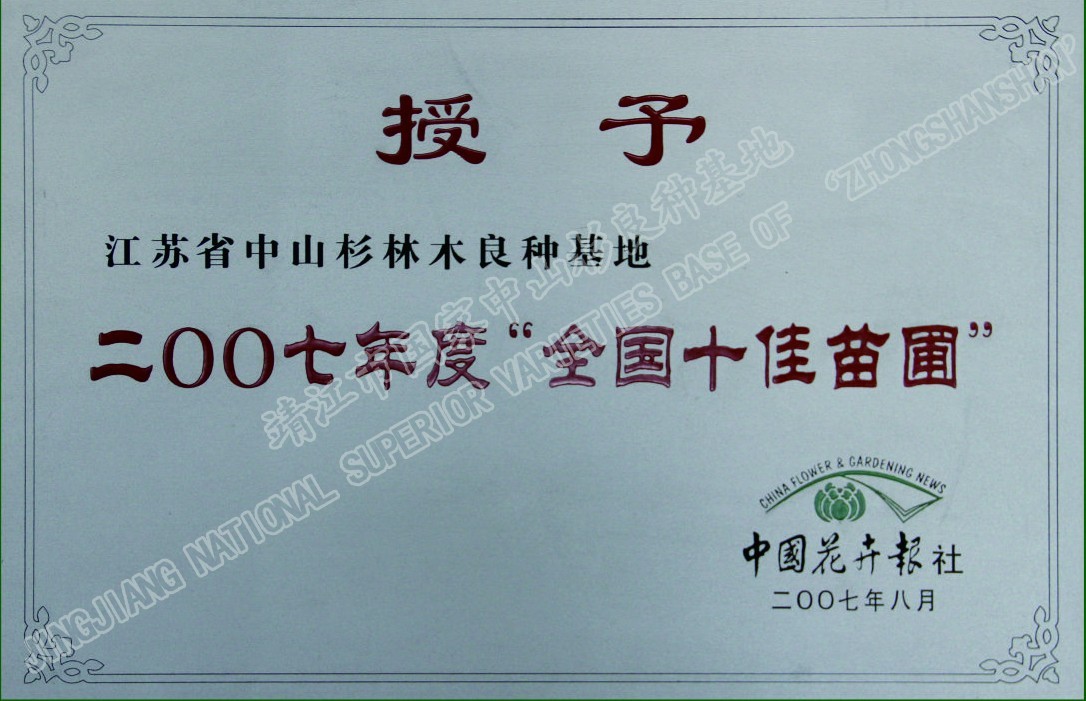 靖江市中山杉林木良種有限公司單位現(xiàn)有職工120人,其中中高級技術(shù)人員26人,初級技術(shù)人員45人,高級技工45多人,備有多功能灑水車、高空作業(yè)車、挖掘機(jī)、草坪噴播機(jī)等齊全的園林施工機(jī)械,年承接綠化工程100萬平方米以上。公司自成立以來,參與了眾多省內(nèi)外綠化重點工程的建設(shè),先后完成江陰長江公路大橋、潤揚(yáng)大橋、南京三橋、蘇州吳中大道、揚(yáng)州西北線繞城、無錫沿江高速、無錫342省道、滬寧高速、泰高路、寧通高......